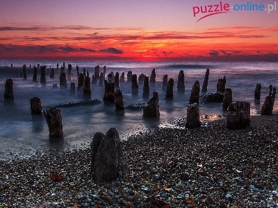Puzzle Zachód, Morze, Plaża, Słońca