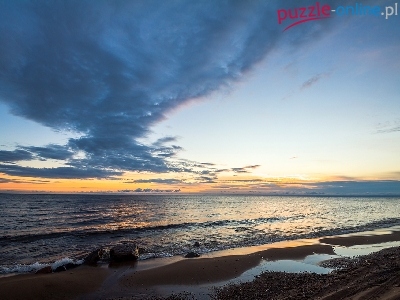 Plaża, Zachód, Kamienie, Chmury, Morze, Niebo, Słońca