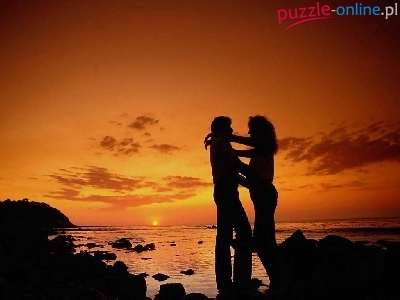 Puzzle Zachód, Zakochani, Plaża, Słońca