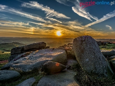 Puzzle Zachód, Kamienie, Pole, Słońca