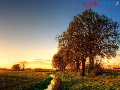 Puzzle Zachód, Strumyk, Pole, Słońca