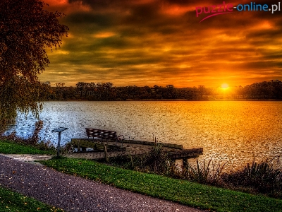 Puzzle Zachód, Jezioro, Pomost, Słońca