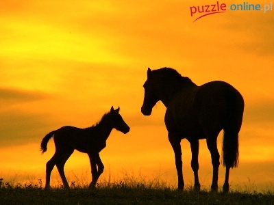 Puzzle Zachód, Koń, Źrebak, Słońca