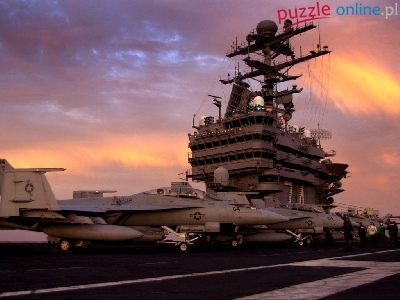 Puzzle Zachód, Lotniskowiec, Samoloty, Słońca