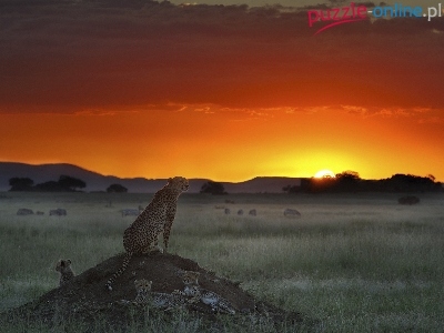 Puzzle Zachód, Gepardy, Sawanna, Słońca
