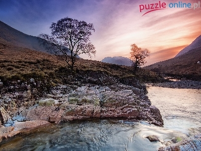 Puzzle Zachód, Rzeka, Skałki, Słońca
