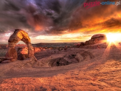 Puzzle Zachód, Góry, Skały, Słońca