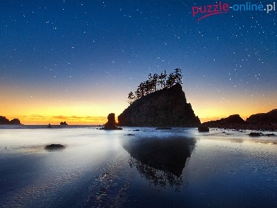 Puzzle Zachód, Morze, Skały, Słońca