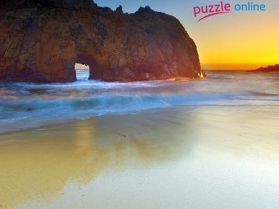 Puzzle Zachód Słońca, Morze, Skały, Kalifornia