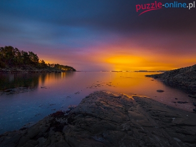Puzzle Zachód Słońca, Morze, Skały, Norwegia