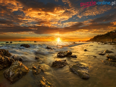 Zachód, Kamienie, Niebo, Morze, Skały, Słońca