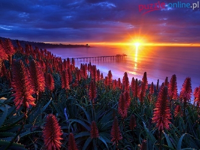 Puzzle Słońca, Zachód, Kwiaty