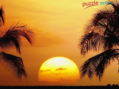 Puzzle Słońca, Zachód, Palmy