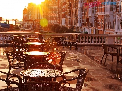 Puzzle Zachód Słońca, Restauracja, Taras, Budynki