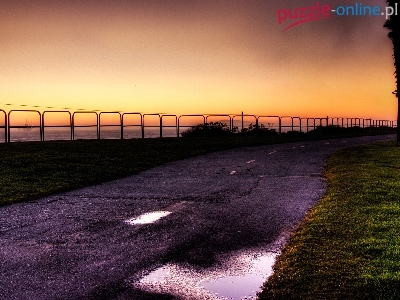 Puzzle Zachód Słońca, Ulica, Trawa, Niebo