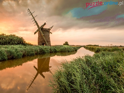 Zachód, Młyn, Rzeka, Trawy, Stary