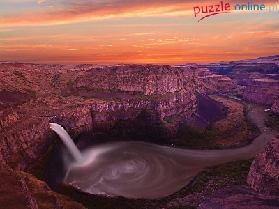 Puzzle Zachód, Kanion, Wodospad, Słońca