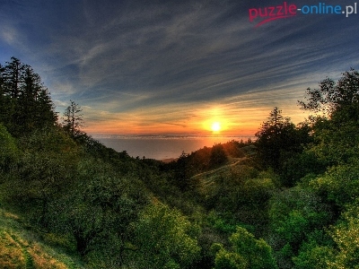 Puzzle Zachód, Drzewa, Wzgórza, Słońca
