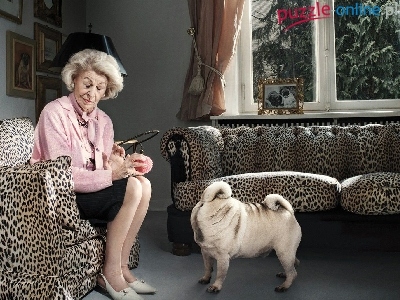 Puzzle Zadek, Babcia, Piłeczka, Psa