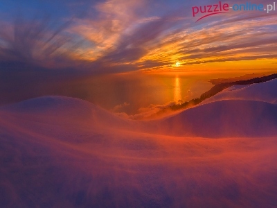 Zachód słońca, Wybrzeże Abchazji, Zima, Gruzja, Morze Czarne, Zadymka