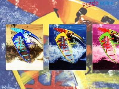 żagiel , fala, Windsurfing, deski kolorowe, morze