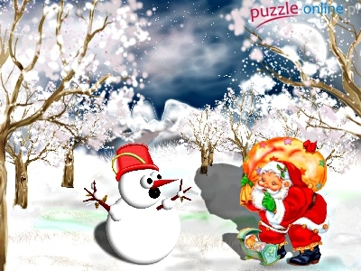 Puzzle Zajączek, Mikołaj, Bałwan, Śnieg