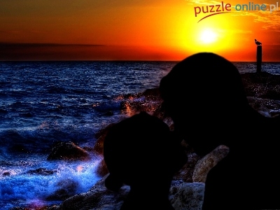 Puzzle Zakochana, Zachód Słońca, Morze, Para