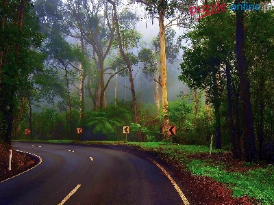 Puzzle Zakręt, Las, Droga, Mgła