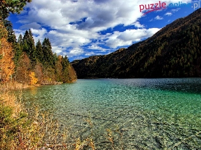 Puzzle Zalesione, Jesień, Jezioro, Góry