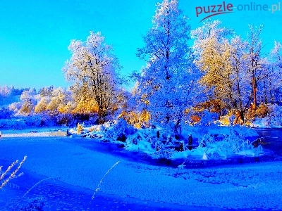 Puzzle Jeziorko, Zamarznięte, Drzewa