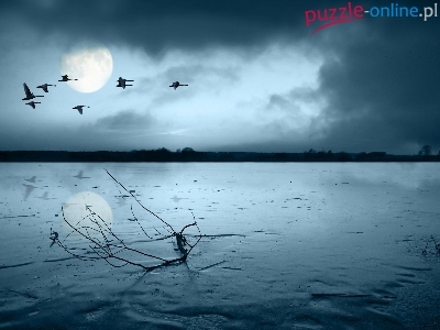 Puzzle Jezioro, Zamarznięte, Gęsi