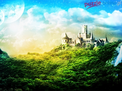 Puzzle Niebo, Zamek, Wodospad