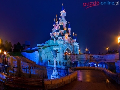 Puzzle Zamek, Sleeping Beauty Castle, Disneyland, Noc