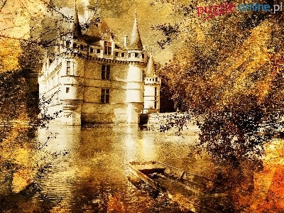 Staw, Chaumont sur Loire, Grafika, Zamek w Chaumont, Francja, Łódka