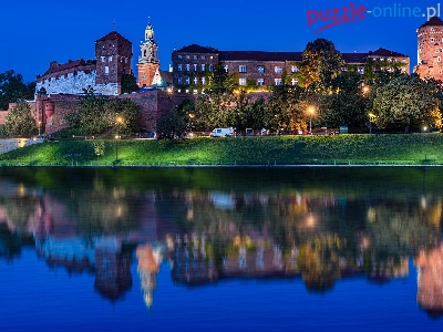 Zamek na Wawelu, Polska, Wisła, Odbicie, Rzeka, Kraków, Noc