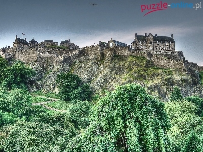 Edynburg, Edinburgh Castle, Drzewa, Zamek w Edynburgu, Szkocja, Skały