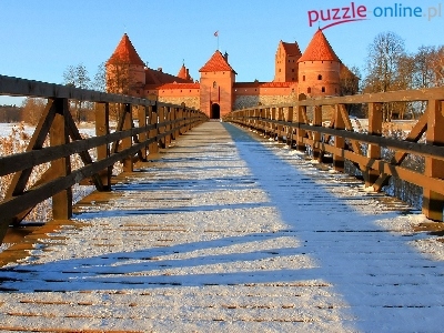 Jezioro Galwe, Troki, Most, Zamek w Trokach, Litwa, Drewniany