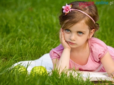 Puzzle Dziewczynka, Zamyślona, Łąka