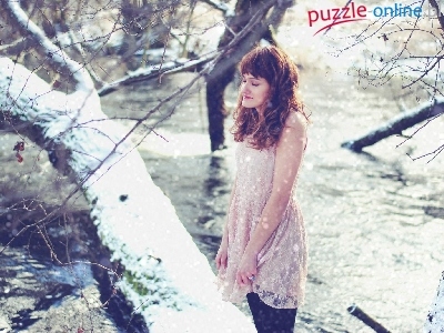 Puzzle Kobieta, Zamyślona, Zima
