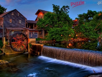 Zapora, Drzewa, Młyn, Rzeka, Domy
