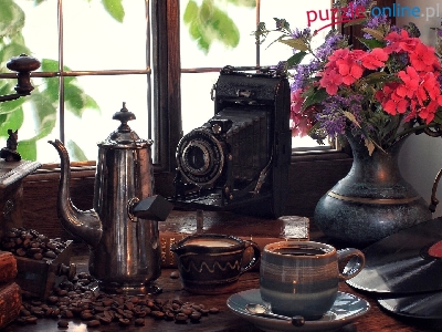 Zastawa, Antyczny, Kwiaty, Kompozycja, Aparat, Kawa