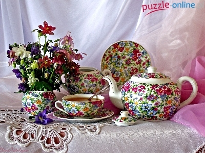 Puzzle Herbata, Zastawa, Kwiaty