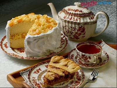Puzzle Zastawa, Tort, Herbata, Taca