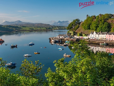 Zatoka, Żaglówki, Jezioro, Wyspa Skye, Portree, Domy, Szkocja, Przystań