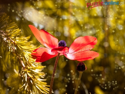 Zawilec, Światło, Kwiat, Czerwony, Gałązka