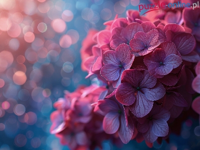 Puzzle Hortensja, Różowy, Kwiat, Zbliżenie