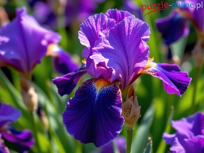 Puzzle Irys, Fioletowy, Rozkwitnięty, Zbliżenie
