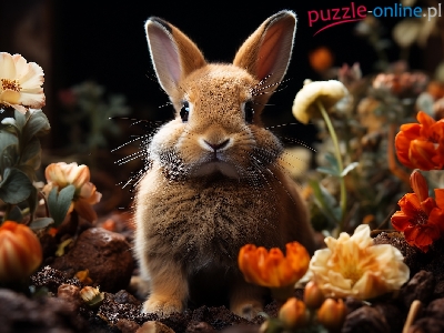 Puzzle Zbliżenie, Kwiaty, Królik