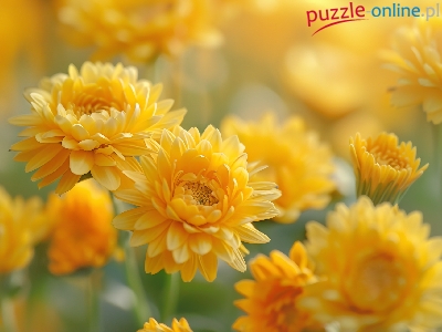 Puzzle Kwiaty, Żółte, Rozwinięte, Zbliżenie