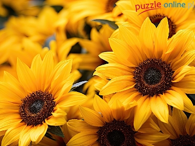 Puzzle Zbliżenie, Słoneczniki, Kwitnące